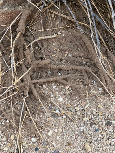 Fall is the season known for the changing colors of tree leaves, but in the Tucson area, it’s also the season for changing trees into termite food. On my daily walks, I’ve noticed that many of my plants’ branches in contact with the ground have recently become encrusted. This is new with the fall season.
